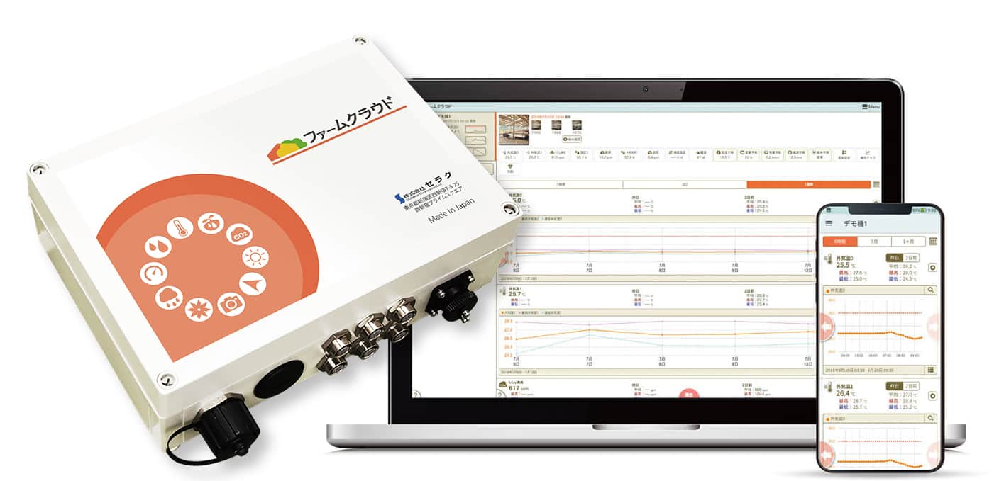 ファームクラウドは、精度の高い環境情報を計測、記録し、どこにいても確認することができます。 -