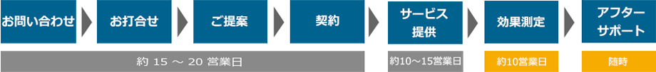 以下の流れに則ってサービスを提供させていただきます。下記日程は納期の目安になります。