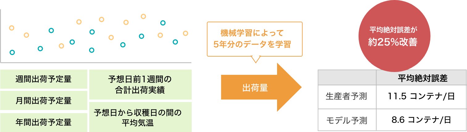 - 生産者の予測を環境データを用いて補正することで正確性を高める