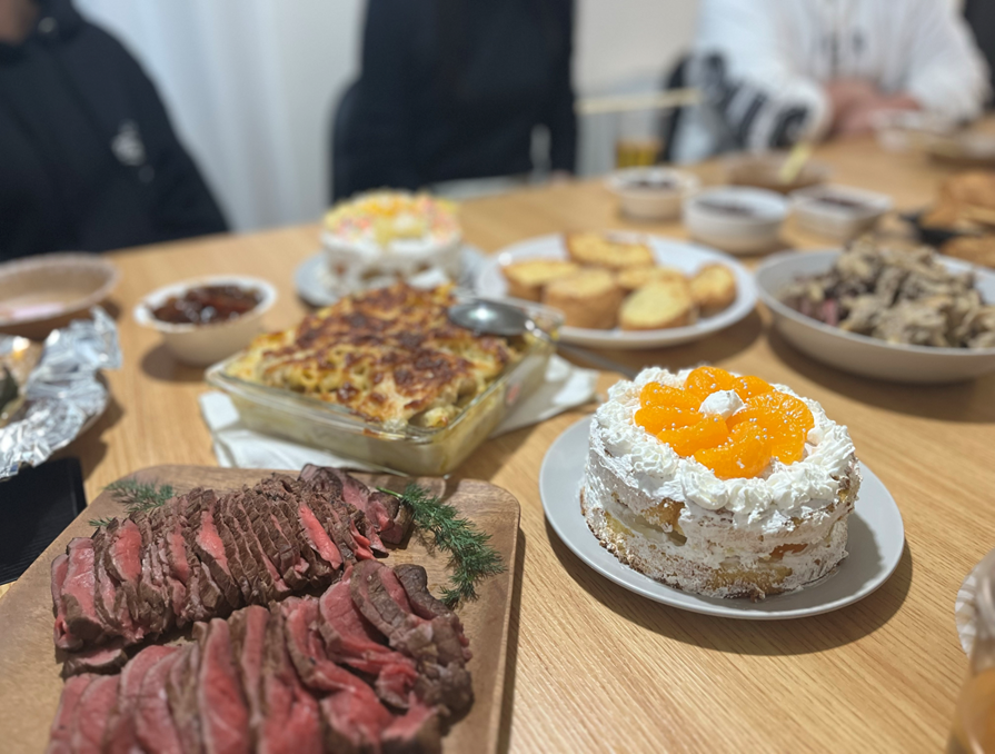 12月ということで、今回のテーマは『クリスマス』。 ローストビーフもしっかり1から作り、今回もばっちり美味しくできあがりました。 苦戦しながらもみんなでわいわい話しながら作って話して食べて・・・ 一足早いクリスマスを満喫できました。