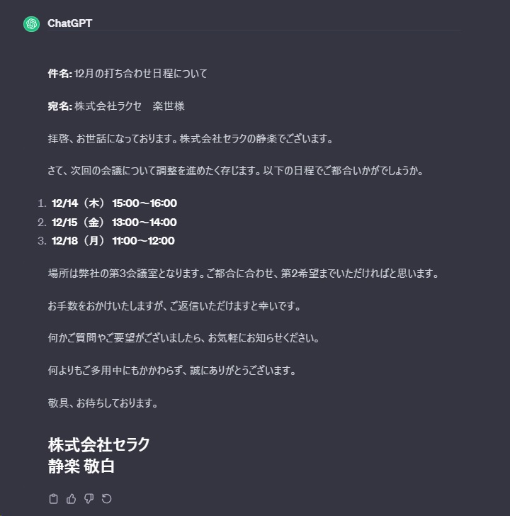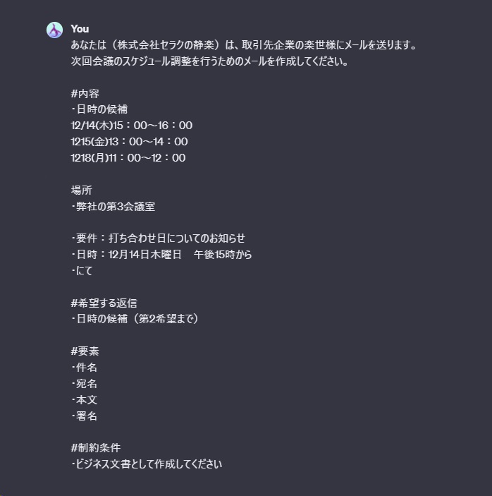 ChatGPTは、Eメールにどのような内容を書きたいのかを伝えると、それをもとに適切な文面を迅速に作成することが可能です。
