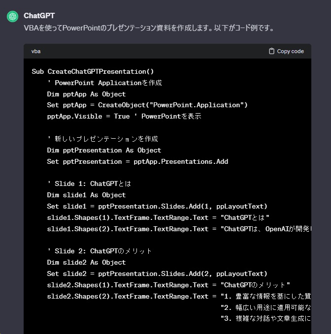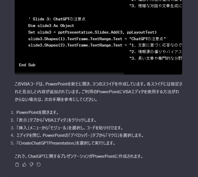 ※以下はパワーポイントでVBAコードを読み込ませたもの