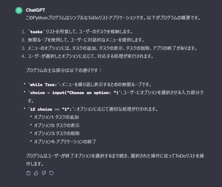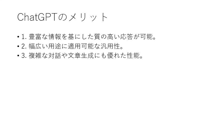 - 人との対話を得意とするChatGPTは質問に対し丁寧な説明を提供する