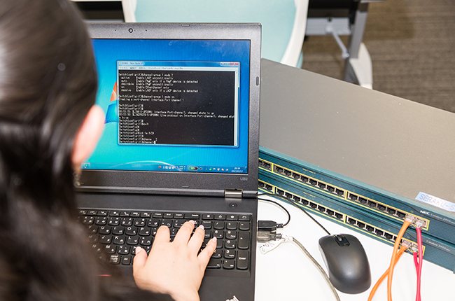 入社してからずっと心がけていること、それは「常に疑問を持つこと」です。ネットワークエンジニアの仕事はネットワークのシステムを構築し、接続したら終わり、ではありません。ネットワークにつながった先でいかにそのシステムを効率よく、またストレスなく運用できるか、にかかっています。そのために、障害が起こった際は「なんで障害が起こったんだろう」、障害を解消させる解決策には「本当にこれで良いのか」という疑問の目を常に持つように心がけています。先輩から教わったさまざまな知識や経験、また助けてもらったことを今度は自分が後輩へとつなぐ、そんなエンジニアになりたいと思っています。