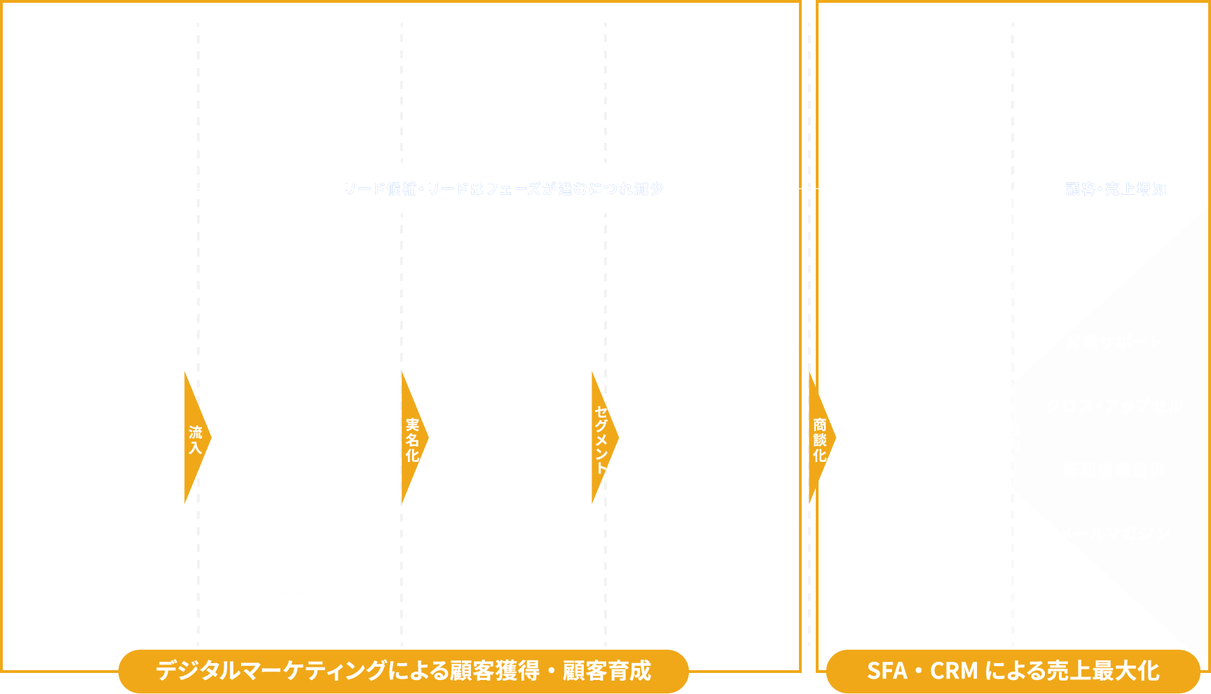 デジタルマーケティングによる顧客獲得・顧客育成からSFA・CRMによる売上最大化を支援します。