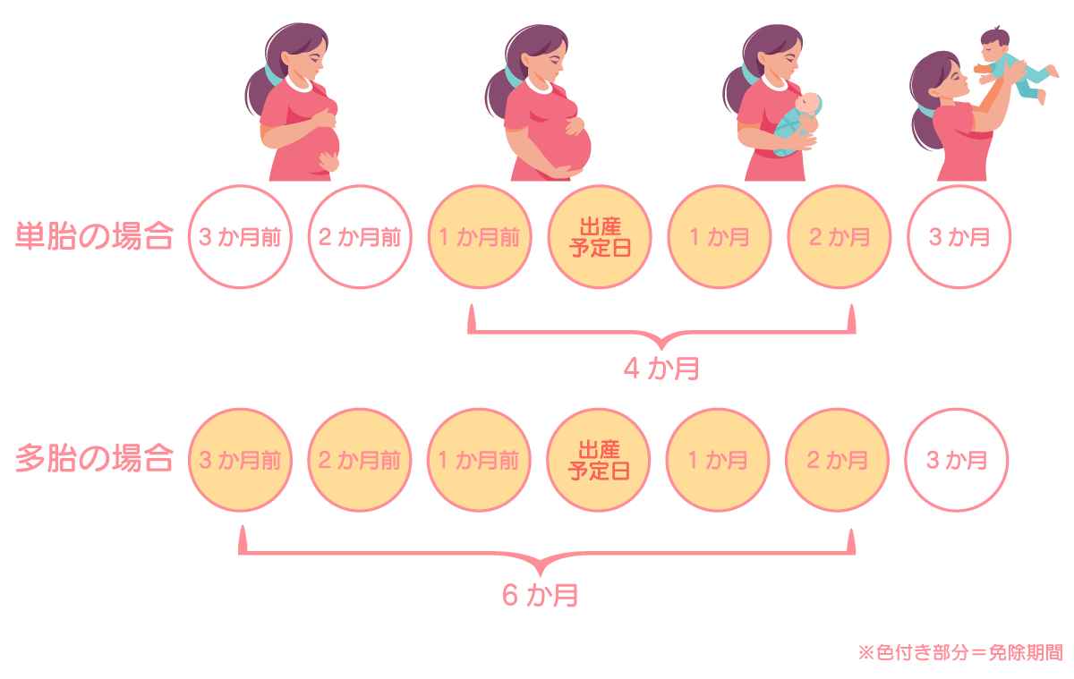 期間:出産予定日の前月から4か月間の期間。人工妊娠中絶も対象となる。