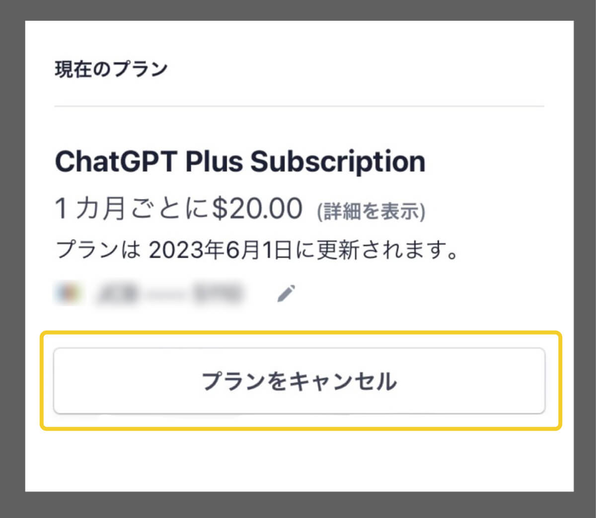 - 「プランをキャンセル」のボタンをタップし、解約します。